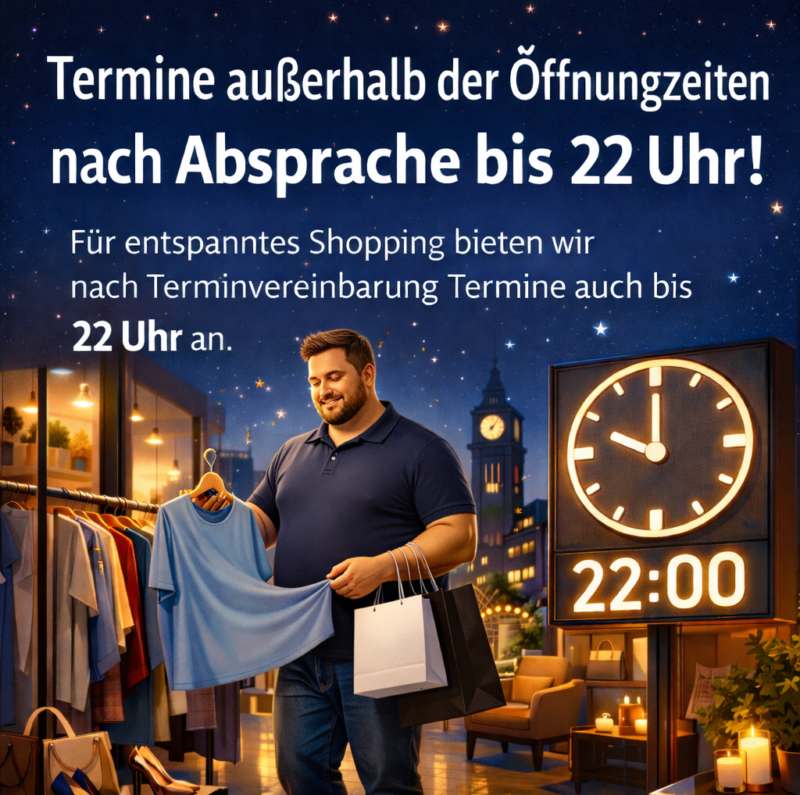 Nach vorheriger Terminvereinbarung sind Einkäufe bei uns jetzt auch außerhalb der regulären Öffnungszeiten bis 22:00 Uhr möglich.